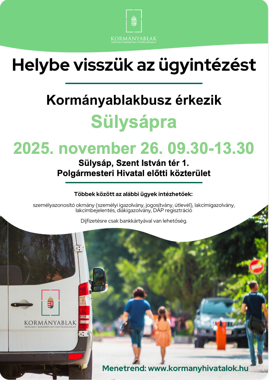 Horváth Judit +36(30)423-8594 ügyfélfogadási idő: hétfő 8:00-12:00, helyszíne: Sülysápi Polgármesteri Hivatal